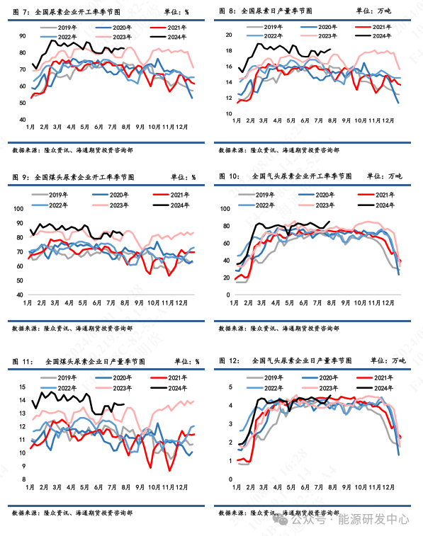 尿素供给:今年以来,尿素企业日产量始终处于历史同期高位,8月份虽有东北及内蒙古等地区部分尿素企业停产检修,但8月份有河南晋开延化,以及陕西龙华煤炭的尿素新装置投产,因此综合来看,预计8月份尿素日产量仍然维持18万吨上下的高位。