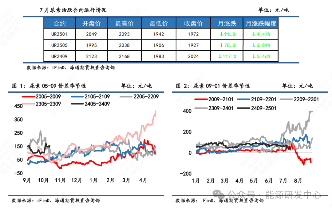 7月国内尿素行情以震荡下行为主,7月份中旬以后尿素下游需求整体较为清淡,上旬部分北方地区夏季虽有追肥,但终端备肥基本已经结束,因此整个7月份下游需求较少,且日产维持高位,因此价格呈现整体下行。中旬之前由于尿素工厂库存较低,价格跌幅较缓,7月5日山东地区尿素价格达到2310元/吨,此为7月份价格高点,下旬以后随着北方夏季农业需求的转弱,部分工厂开始累库,尿素价格跌势加速,截至7月30日,山东地区尿素市场主流价为2130元/吨,跌幅约为7.4%。而期货方面,因7月中旬以后需求预期转差,盘面下跌较为顺畅,截至7月30日,尿素期货09合约收盘价为2024元/吨,跌幅为5.46%。