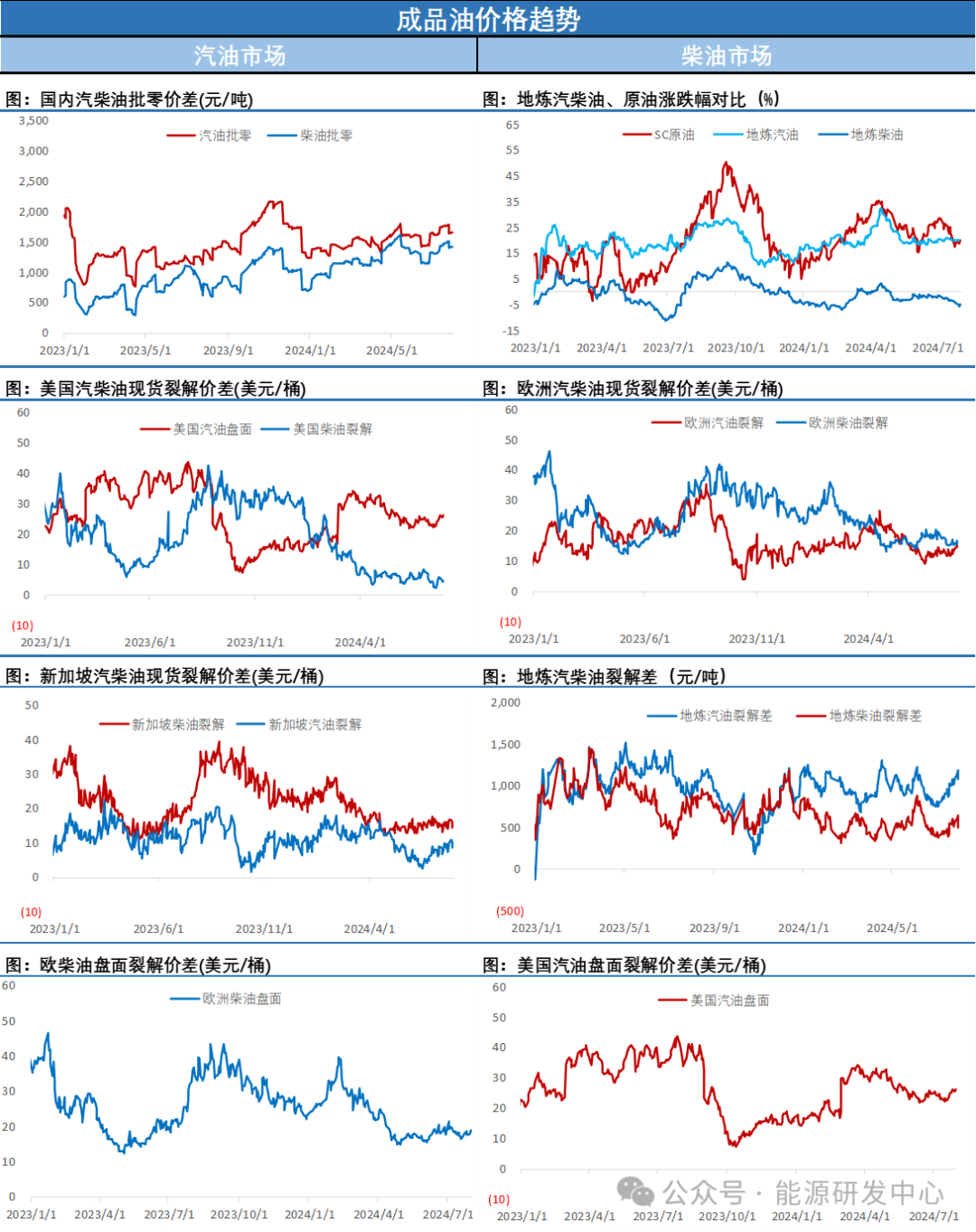 让油价破局下跌的直接影响是美国公布的系列数据重新引发了投资者对经济衰退进而影响需求的担忧,夜盘美国公布7月ISM制造业PMI录得46.8,为2023年11月以来新低。数据公布之后油价开始持续回落,并逐渐扩大跌幅,原油和铜均大跌引领大宗商品昨天的回调,显然投资者情绪和预期处于摇摆阶段,而近期宏观经济层面因素成为压制价格的重要因素,英国央行昨天如期下调利率,美国系列糟糕的数据有助于美联储降息决定,但投资者更担心经济衰退的风险。而对于原油来说中东地缘问题,和现阶段供需层面的去库表现会为油价反弹提振能量。最终油价的节奏需要取决于投资者对诸多因素的权衡。昨天报告中提到对油价运行节奏把握上仍有很大挑战,夜盘市场就马上给上了实践课,而这个局面预计还将延续,我们判断油价的反弹动作并未结束,从交易角度者来说高波动的行情把握起来难度很大,注意节奏把握。